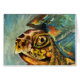 Acrylschilderingen van kweekschildpad in warme kleur met een koele achtergrond.