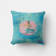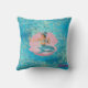 Zeemeermin zit in haar schelp, gooi kussen. Met een prachtige blauwe achtergrond voor schitterende stijl. VOEG DE NAAM, van de speciale persoon toe, die dit zal ontvangen. Geschikt geschenk voor elke dame.