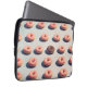 Dit ontwerp bevat een chocolade donut onder een grote groep roze donuts.