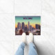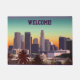Deze kleurrijke vectorillustratie is voorzien van een prachtige skyline die wordt gedomineerd door wolkenkrabbers en palmbomen uit het centrum van Los Angeles met een prachtige Californische zonsondergang op de achtergrond.