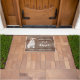 Grappig pas op voor de natte kusser" Draadharige Jack Russell Hondendeurmat gezet op een rustieke faux achtergrond. Bezoek onze winkel om een groot assortiment hondenbroden te uitzichten