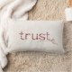 TRUST in de rode inspirerend tekst met de naald en de draad op de lichtroomkleurige getextureerde achtergrond