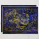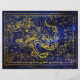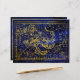 Mooie digitale kunst kenmerkt tientallen hemellichamen, waaronder prominente Draco, in goud op de achtergrond van de nachtblauwe sterrenhemel. Hetzelfde afbeelding aan beide zijden