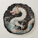 Cet oreiller de forme ronde est doté d'un dragon de style asiatique blanc et de nuages sur un arrière - plan noir.