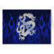 Un Dragon applique en chrome comme le style argent sur un imprimé arrière - plan en fibre de carbone flamboyant bleu à porter ou à partager à toutes les occasions festives. Message