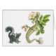 Un dragon rose sauvage remet quelques cynorrhodons à une mouffette de bébé (la carte de voeux)