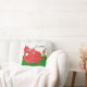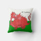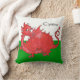 Un coussin ou un coussin à personnaliser, avec un dragon rouge mignon sur un arrière - plan vert et blanc, semblable au drapeau national de Gallois ; d'une illustration lunatique peinte à la main par Judy Adamson.
