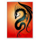 Ce dragon tribal noir se repose sur un arrière - plan rouge et jaune lumineux. Le soleil apparaît juste derrière la tête du dragon qui fait face vers le bas dans une pose élégante. Les serpents du corps du serpent et courbe alors de retour vers le bas avec lui est de grandes ailes noires se prolongeant à l'extérieur. Ce motif renversant fait une belle carte.