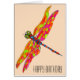 Verjaarkaart met originele Dragonfly-illustratie van kunstenaar Sacha Grossel met neongeschilderde Dragonfly-insect. Kleurrijk en levendig