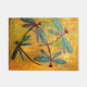 Prachtige metalen gekleurde libellen op een gouden gewassen achtergrond. Een heldere en vrolijke mat die er geweldig uitziet bij elke deur.