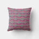Gooi kussen met libel ontwerp in kleuren van roze en paarse tegen een grijze achtergrond.