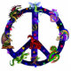 Het assortiment van de regenboog van diverse draken al aandeelruimte met multicolored sterren op een klassiek vredessymbool.