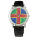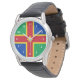 Montre avec design avec un drapeau du comté historique de Lincolnshire, en Angleterre, Grande-Bretagne; drapeau vert et bleu avec croix rouge et jaune et une Fleur-de-Lis dans le centre