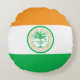 Coussin rond avec drapeau de la ville de Miami, Floride; drapeau avec trois bandes horizontales d'orange, blanc et vert avec emblème avec une illustration d'un palmier dans le centre