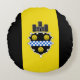 Coussin rond avec le drapeau de la ville de Pittsburgh, Pennsylvanie; drapeau avec trois bandes verticales de noir et jaune avec l'illustration du château et le bouclier au centre