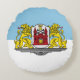Coussin ronde avec design avec drapeau de Riga, capitale de la Lettonie ; drapeau blanc et bleu avec armoiries avec deux lions d'or tenant un bouclier au centre
