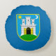 Coussin rond avec design avec drapeau de Zagreb, capitale de la Croatie, drapeau bleu avec emblème