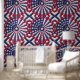 Drapeau Isométrique USA Fond d'écran et rideau Motif Ce papier peint et rideau unique présente un motif isométrique attrayant du drapeau américain. Le drapeau est représenté par des étoiles bleues sur un arrière - plan blanc, entouré d'une bordure circulaire rouge. Les étoiles sont disposées dans un motif radial captivant, avec l'espace central qui présente l'emblématique champ bleu. Ce design ajoute une touche de modernité géométrique à tout espace tout en célébrant le patriotisme américain.