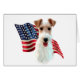 USA ! Amérique ! Criez votre fierté avec ce drapeau magnifique arrière - plan patriotique avec ce chien AKC race Wire Fox Terrier au premier plan. Montrez votre fierté avec ce design sur un t-shirt, une tasse, et beaucoup, beaucoup plus!