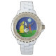 Wat gebeurt er als een kunstenaar te veel tijd in handen heeft? Ze maakt horloges natuurlijk! Wees de eerste van je vrienden die een gedurfde, kleurrijke, grillige, kunst horloge sport. We hebben allemaal wel eens gehoord van "waakhonden", maar hoe zit het met hondenhorloges? Dit charmante ontwerp is gebaseerd op een origineel acrylschilderij, getiteld, "Three Dog Night, The Painting, Not The Band" door internationaal onbekende kunstenaar, Carmen I Hurt.
