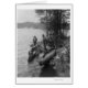 In 1890 werden drie jagers met kano's op de Shore Foto gemaakt.