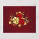 De samenstelling van twee op ambachtelijke wijze geverfde rode rozen en één gouden roos, versierd met goud, juwelen bladeren op een getextureerde achtergrond.