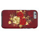 De samenstelling van twee op ambachtelijke wijze geverfde rode rozen en één gouden roos, versierd met goud, juwelen bladeren op een getextureerde achtergrond.