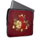 De samenstelling van twee op ambachtelijke wijze geverfde rode rozen en één gouden roos, versierd met goud, juwelen bladeren op een getextureerde achtergrond.