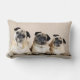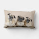Drie pugs in rij kussen