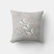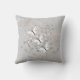 gooien van kussens met mijn vectorontwerp van drie witte en zwarte vlinders die op een grijze achtergrond over luchtbelletjes van grijs en wit vliegen met perziken.