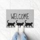 Drie zwarte katten lopen over je portier. Boven de kattengrafiek is het woord WELCOME gedrukt in trendy zwarte doopvont. De achtergrond van het portier is lichtgrijs. Een leuk, zorgvuldig ontwerp dat je vrienden en familie bij je thuis zal verwelkomen. Als u een verschillende achtergrondkleur of een verschillend bericht op uw formaat verkiest kunt u de hulpmiddelen op scherm gebruiken om het bericht en de kleur gemakkelijk te veranderen om uw decor aan te passen. Als je hulp nodig hebt, kun je contact met me opnemen. Ik zal je helpen je unieke ontwerp te creëer!