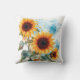 Drie waterverf zonnebloemen zijn als zonneschijn tegen een levendige blauwe lucht.