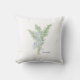 Sierkussen met een botanische afbeelding van een tak van een bloeiend rozemarijn kruid plant. Een zijde is bedrukt met een grote druk van het kunstwerk. De andere zijde is bedrukt met de bloeiende rozemarijn in een patroon. Auteursrechten van kunstwerken: Dominic A. White. Alle rechten voorbehouden.
