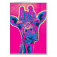 Une pose amusante d'une jolie girafe - qui sort sa langue ! Couleurs de néon gaies et amusantes de rose et de bleu. Amusant style pop art rétro des années soixante.