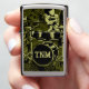 Deze Zippo® Lighter is voorzien van een persoon die een drumset afspeelt, en een sjabloon voor de tekst van uw initialen op de trommel