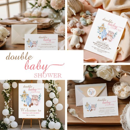 Waterverf illustratie cute een paar kinderkleding voor twee jongens Sjabloon Shower Feest is perfect voor een baby shower feest. Elegant-minimalistische thema uitnodiging is vol leuke en schattige ontwerpelementen zoals baby shower feest, roze en bruine lettertype met elegante kalligrafie op een witte achtergrond. Babyfeestjes zijn speciaal, en deze uitnodiging kan helpen om een onvergetelijk baby shower feest te maken.