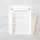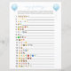 Deze dubbelzijdige gamekaart heeft twee verschillende versies van emoji pictionary op de voor- en achterkant en is ideaal voor een baby shower of baby-bestrooiing. Deze emoji pictionary baby shower game beschikt over een waterverf blauw ballon. Je gasten kunnen deze veel voorkomende zwangerschaps- en baby-gerelateerde zinnen oplossen door de emoticons te decoderen. ANTWOORDSLEUTEL: 1. Baby shower 2. Tweeling 3. Drieling 4. Mama wordt 5. Water breken 6. Hospital Baby Bag 7. Uiterste datum 8. Baby fles 9. Reis naar het ziekenhuis 10. Snijden van het snoer 11. In de oven 12. Geen alcohol 13. Meisje of jongen? 14. Zwangerschapsaankondiging 15. Baby Food 16. Hartbrand 17. Ochtendmisselijkheid 18. Vlinderzoenen 19. Baby 20. Hunkeren naar zwangerschap. Je gasten kunnen de namen van de kinderboeken en kinderrijmpjes oplossen door de emoticons te decoderen. ANTWOORDSLEUTEL: 1. Vijf kleine aapjes springen op het bed 2. De hoofdplaats is Twinkle Little Star 3. Het is de opvolger van Itsy Bitsy Spider 4. Regenboogvis 5. De hongerige rups 6. De leeuw, de heks en de garderobe 7. Hickory Dickory Dock 8. Ik spion 9. Groene eieren en ham 10. Winnie de Poeh 11. Charlotte's Web 12. Alice in Wonderland 13. Geef een muis een koekje 14. Hé Diddle Diddle 15. Er was een oude vrouw 16. Eén vis, twee vissen, rode vis, blauwe vis 17. Waar de wilde dingen zijn 18. Goudlokje en de drie Beren 19. De drie biggetjes 20. Old MacDonald had een Boerderij. U kunt dit ontwerp personaliseren door te klikken op "Deze sjabloon personaliseren" of als u het lettertype, de kleuren of de ontwerpelementen op een andere manier wilt wijzigen, kunt u klikken op "Bewerken met de ontwerptool".
