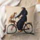 Concept voor de voorkant van een dubbelzijdig kussen: een lief tafereel van een moeder die op haar fiets zit met haar hond vastgebonden met een touwtje.