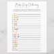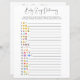 Deze dubbelzijdige gamekaart heeft twee verschillende versies van emoji pictionary op de voor- en achterkant en is ideaal voor een baby shower of baby-bestrooiing. Dit emoji-pictioneringsspel heeft een modern scriptontwerp. Ideaal voor een genderneutraal feest. Je gasten kunnen deze veel voorkomende zwangerschaps- en baby-gerelateerde zinnen oplossen door de emoticons te decoderen. ANTWOORDSLEUTEL: 1. Baby shower 2. Tweeling 3. Drieling 4. Mama wordt 5. Water breken 6. Hospital Baby Bag 7. Uiterste datum 8. Baby fles 9. Reis naar het ziekenhuis 10. Snijden van het snoer 11. In de oven 12. Geen alcohol 13. Meisje of jongen? 14. Zwangerschapsaankondiging 15. Baby Food 16. Hartbrand 17. Ochtendmisselijkheid 18. Vlinderzoenen 19. Baby 20. Hunkeren naar zwangerschap. Je gasten kunnen de namen van de kinderboeken en kinderrijmpjes oplossen door de emoticons te decoderen. ANTWOORDSLEUTEL: 1. Vijf kleine aapjes springen op het bed 2. De hoofdplaats is Twinkle Little Star 3. Het is de opvolger van Itsy Bitsy Spider 4. Regenboogvis 5. De hongerige rups 6. De leeuw, de heks en de garderobe 7. Hickory Dickory Dock 8. Ik spion 9. Groene eieren en ham 10. Winnie de Poeh 11. Charlotte's Web 12. Alice in Wonderland 13. Geef een muis een koekje 14. Hé Diddle Diddle 15. Er was een oude vrouw 16. Eén vis, twee vissen, rode vis, blauwe vis 17. Waar de wilde dingen zijn 18. Goudlokje en de drie Beren 19. De drie biggetjes 20. Old MacDonald had een Boerderij. U kunt dit ontwerp personaliseren door te klikken op "Deze sjabloon personaliseren" of als u het lettertype, de kleuren of de ontwerpelementen op een andere manier wilt wijzigen, kunt u klikken op "Bewerken met de ontwerptool".