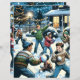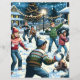 Vakantie winter thema plakboek papier. Een schattige winterscène gedaan in een stripboekstijl met kinder sneeuwballengevechten in de voortuin. Hoop met deze kunst een nostalgisch gevoel op te wekken.