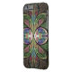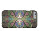 iPhone 6/6S hoesje van "Duchess of Sauchiehall", een Apophysis fractal van Susan Wallace. Copyright © 2013, Susan Wallace. Abstract gekleurd glazen floreel Kunst Schimmelglas in tinten van groen, helder roze roze en paars met chocoladebruine en blauwe hoogtepunten.