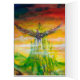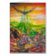Peinture acrylique colorée et vibrante en vert, orange jaune, violet, rouge brun, blanc couleurs 2009, Duel entre Bradamant et Negromancer sur son griphon avec des ailes énormes. Orlando Furioso, Canto 2 écrit par le poète italien de la Renaissance Ludovico Ariosto 1516.