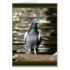 Huisdierenduiven genieten van zonneschijn op een rots naast een vijver.