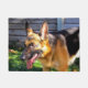 Deze deurmat heeft een afbeelding van een Duitse Herder erop.