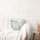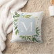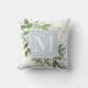 Dit kussen is ontworpen met een groen lijst rond een monogram, en de achterkant is een stevig stoffig blauw.