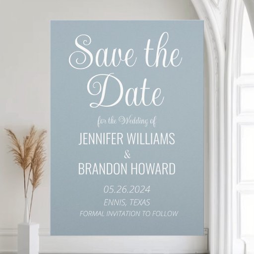 Dusty Blue, waterverf, floral, typografie, modern, elegant, trouwbonnen. Pas uw namen en de datum van het huwelijk aan.