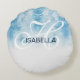 Dusty Blue Winter Script Calligraphy Monogram Round Pillow | Beste cadeau voor haar