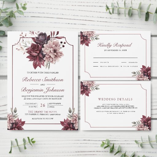 Amaze your guests with this elegant all in one wedding invite featuring beautiful flowers and modern typography with QR Code for online RSVP. Simply add your event details on this easy-to-use template and adorn this card with your favorite photos to make it a one-of-a-kind invitation.