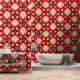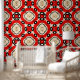 Transformeer uw ruimte met deze fascinerende schil en stick wallpaper! De levendige rode achtergrond vormt de basis voor een ingewikkeld ontwerp dat symmetrische patronen combineert in beige, zwart en wit. Elk medaillon-achtig motief is omgeven door stervormige elementen, waardoor een dynamisch mozaïekeffect ontstaat. Of u nu een slaapkamer, woonkamer of kantoor aan het inrichten bent, dit gedurfde behang voegt een vleugje elegantie en visuele interesse toe.