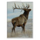 Bull Elk Lucky 13 Bull Card. Cet énorme vieux taureau arborant treize points sur sa rampe massive arrive à la fin de ses "premières" années, mais coupe toujours une figure intimidante alors qu'il se dresse fièrement sur les plaines enneigées.
